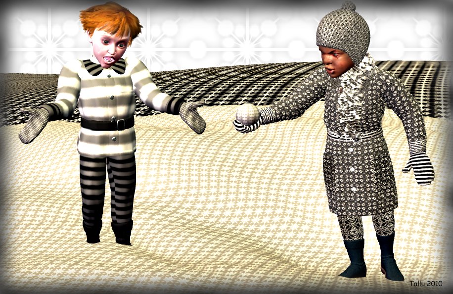 There are 4 ZIP files: And, of course, these tiles are free for personal and commercial renders, and for personal, freebie, and commercial texturing. Terms and conditions ![]() Just a small sample of colored tiles from all 4 sets. ![]() Just a small sample of greyscale tiles from all 4 sets. Think how bumpy and displacementy you can get with these! ![]() From Set #1: Stripey goodness! Greta and Boshenka and their snowman think stripes are the freakin' wave of the future. Poinsettia stripes! Snowy stripes! Bouncy dotty stripes! Nifty gifty stripes! ![]() From Set #2: Snowflakes. There are way more patterns in this set than you see here. The knit texture may not look extremely snowflake-like, but it was derived from a snowflake texture, and comes in greyscale as well as in colors. Tabitha just loves her green sweater and her red and green snowflake patterned pants. Hah! Not all the stripes are in the Stripes zip! ![]() From Set #3: Ornaments! And who would have thought that you could knit a sweater out of ornaments, eh? Well, that's what Hedrick did. You may not be able to tell from here, but his sweater is 100% ornament-derived. It's Christmas magic, I tell you! ![]() From Set #4: Christmas Fairies, Lacy butterflies-and-flowers, and a big X that makes a nice harlequin trellis when you use one of its greyscale versions as a trans map! Great for climbing. Better than a rock wall! ![]() It's possible to go overboard with greyscale. ![]() Mix the tiles up together in one room, and you can have a very Christmassy experience. I think this mature, sophisticated version of Boshenka is going to have a very romantic Christmas. I wonder who's just entered the room, beyond the frame where we can't see? I have a feeling he's worth looking at. Have lots of fun playing with your tiles! Here they are: MERRY CHRISTMAS! Love, Tallulahdahling |